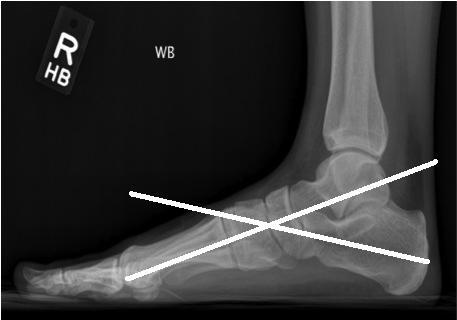 using the lateral view of the foot, angle formed between the longitudinal axes of the talus ( RID2949) and calcaneus ( RID2959 )