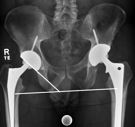 Angle formed between slope of cup and line drawn through base of ischial tuberosities (RID2550 ) -- or teardrop